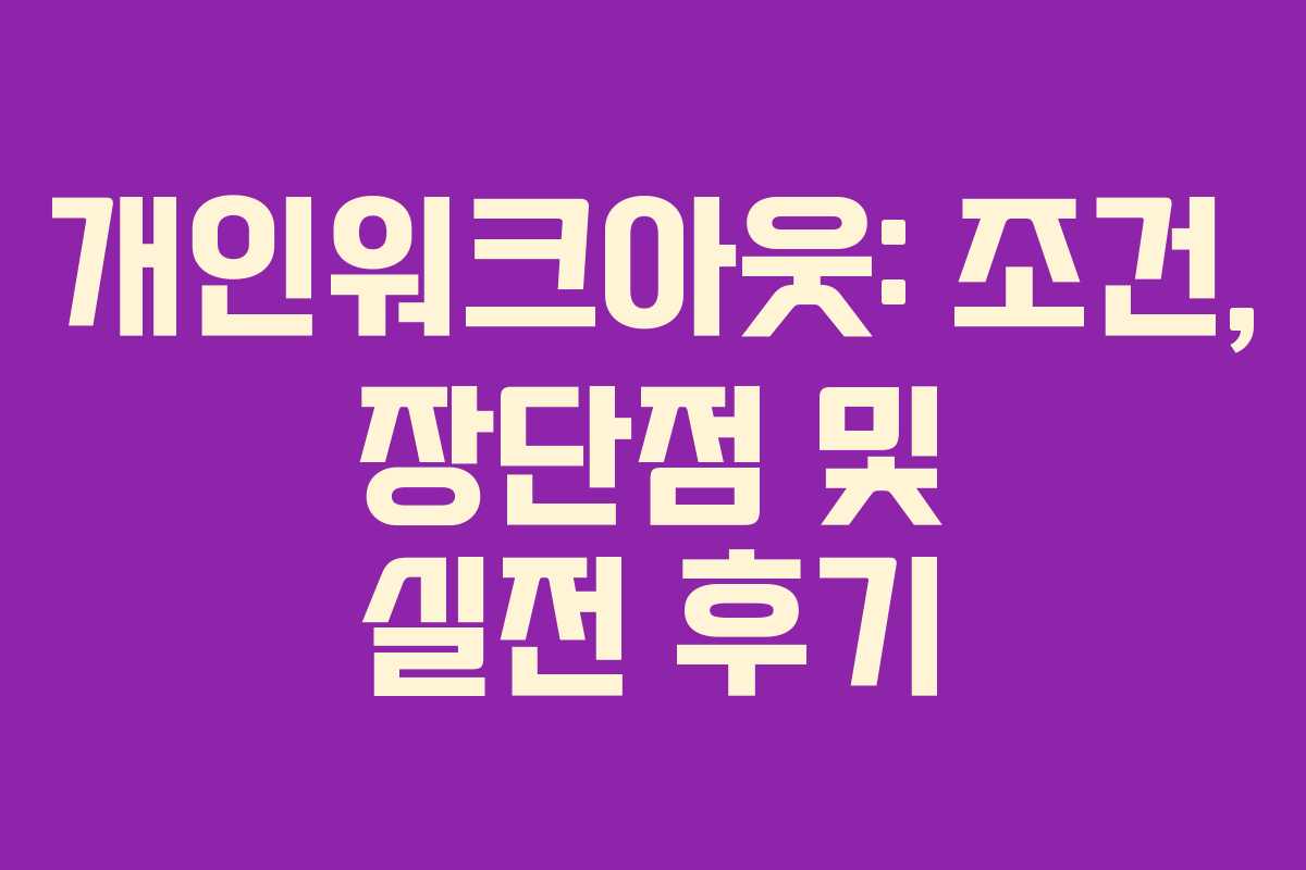 개인워크아웃은 신용회복위원회에서 제공하는 채무 조정 프로그램으로, 많은 사람들에게 경제적 회복의 기회를 제공합니다. 이 글에서는 개인워크아웃의 개념과 조건, 장단점, 그리고 실제 경험담을 공유하겠습니다.