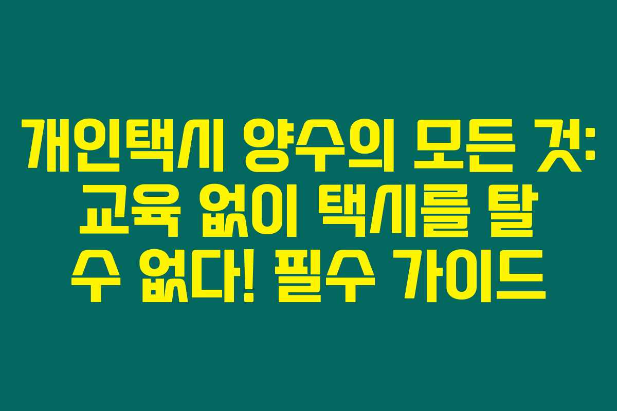 개인택시 양수의 모든 것: 교육 없이 택시를 탈 수 없다! 필수 가이드