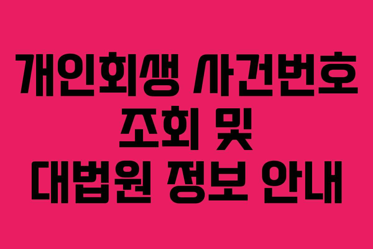 개인회생 사건번호는 대법원 홈페이지를 통해 간편하게 조회할 수 있습니다. 다음은 사건번호 조회 방법입니다: