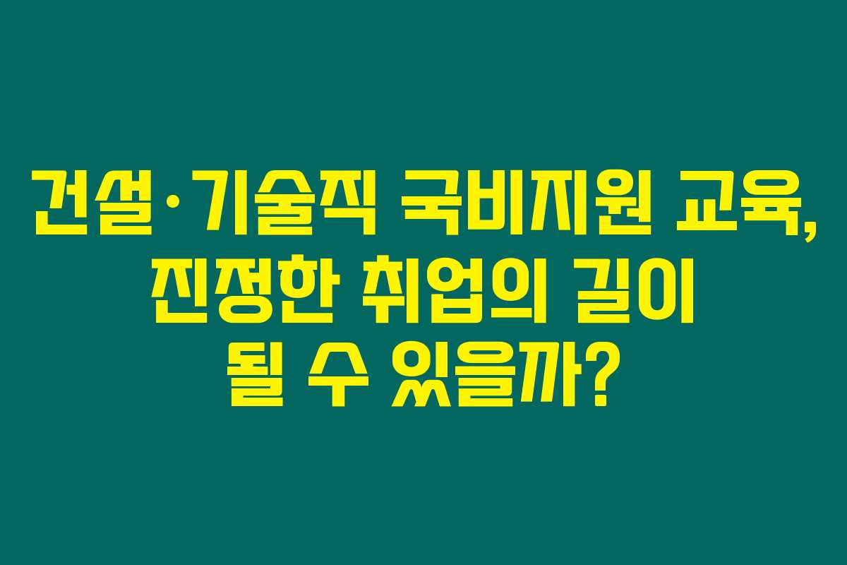 건설 및 기술직에서 자격증은 필수인데요. 이를 통해 취업 기회를 얻을 수 있습니다. 제가 알아본 바로는, 국비지원 교육은 자격증 합격률을 높여주는 매우 유익한 기회입니다.