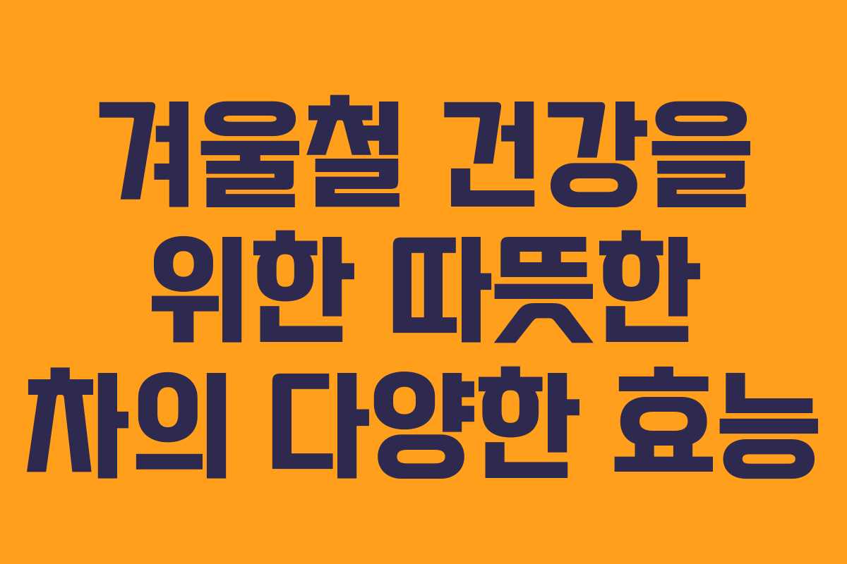 따뜻한 차는 겨울철 건강 관리를 위한 좋은 선택이다. 각종 차의 효능을 잘 활용하면 건강을 지키며 겨울을 보다 쾌적하게 보낼 수 있다. 자신의 체질에 맞는 차를 찾고 규칙적으로 섭취하는 습관을 통해 건강한 겨울을 보내는 것이 중요하다.