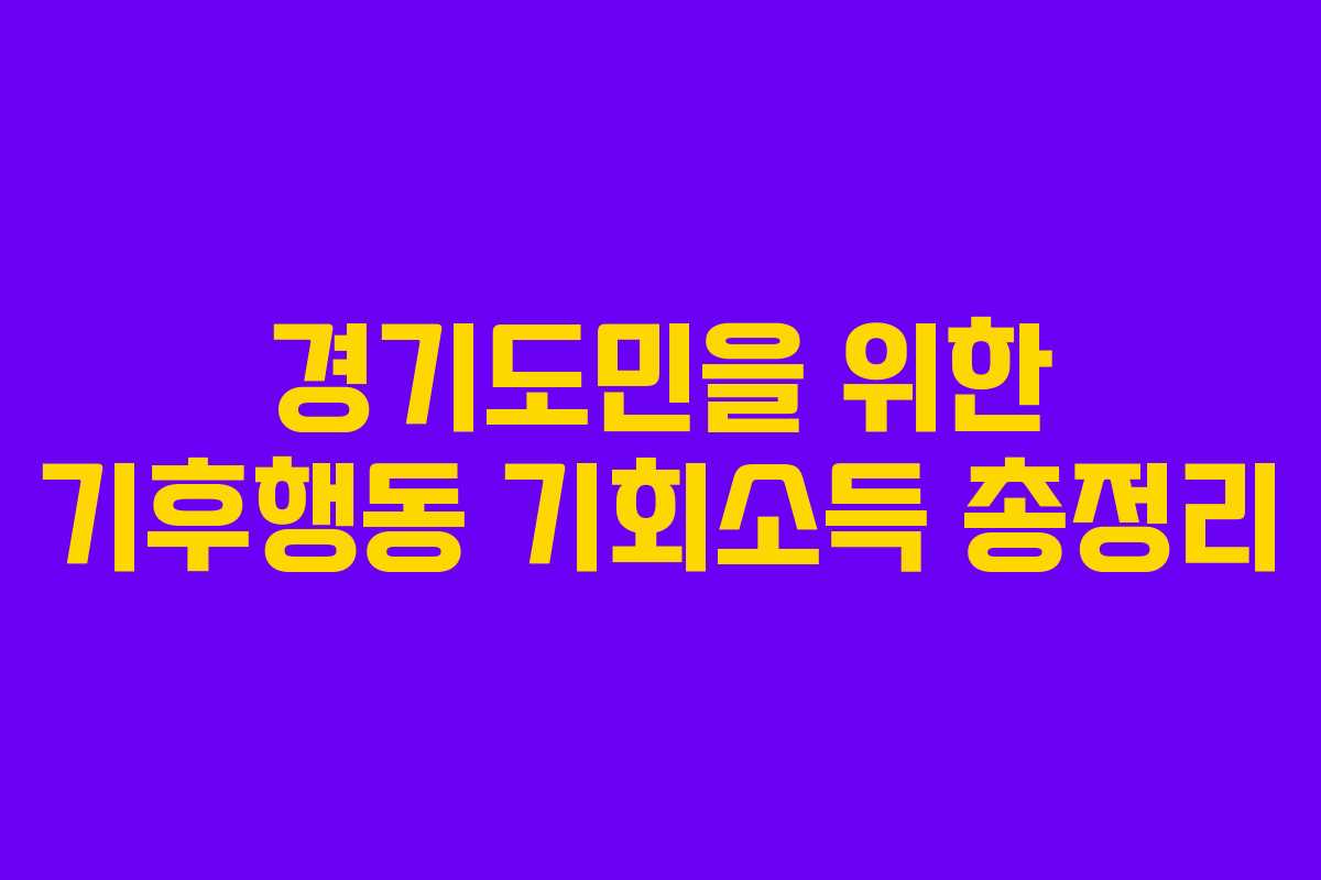 최근 기후 변화의 심각성이 부각되면서 탄소중립을 위한 다양한 노력이 필요해졌습니다. 경기도에서는 이를 지원하기 위해 ‘기후행동 기회소득’ 프로그램을 운영하고 있으며, 이를 통해 도민들이 환경 보호에 참여할 수 있는 여러 가지 방법과 혜택을 제공하고 있습니다.