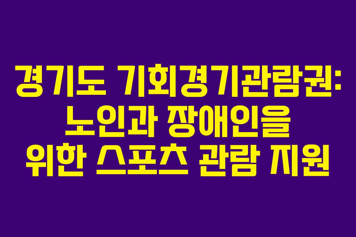 스포츠 경기를 직접 관람하는 것은 많은 이들에게 특별한 경험이 될 수 있습니다. 경기도에서는 노인과 장애인들이 프로스포츠를 보다 쉽게 관람할 수 있도록 기회경기관람권 제도를 시행하고 있습니다. 이번 글에서는 기회경기관람권의 지원대상, 내용, 그리고 티켓 구매 방법에 대해 자세히 알아보겠습니다.