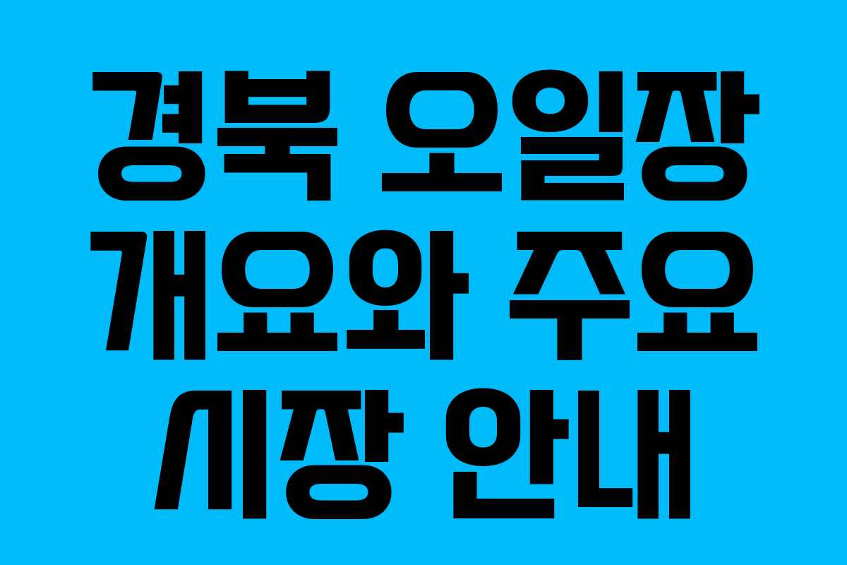 경상북도는 전통적인 오일장이 열리는 지역으로, 정기적으로 개최되는 장터가 지역 경제 및 공동체에 미치는 긍정적인 역할이 크다. 이 장터는 매월 4일, 9일, 14일, 19일, 24일, 29일에 열리며, 각 시장마다 고유의 특색과 상품을 제공한다. 오일장은 단순한 상업 활동을 넘어 지역 주민들이 모여 소통하고 관계를 형성하는 중요한 장소로 기능한다. 특히 관광객들에게는 지역의 특산물을 저렴하게 구매하고, 다양한 먹거리를 경험할 수 있는 기회를 제공한다.