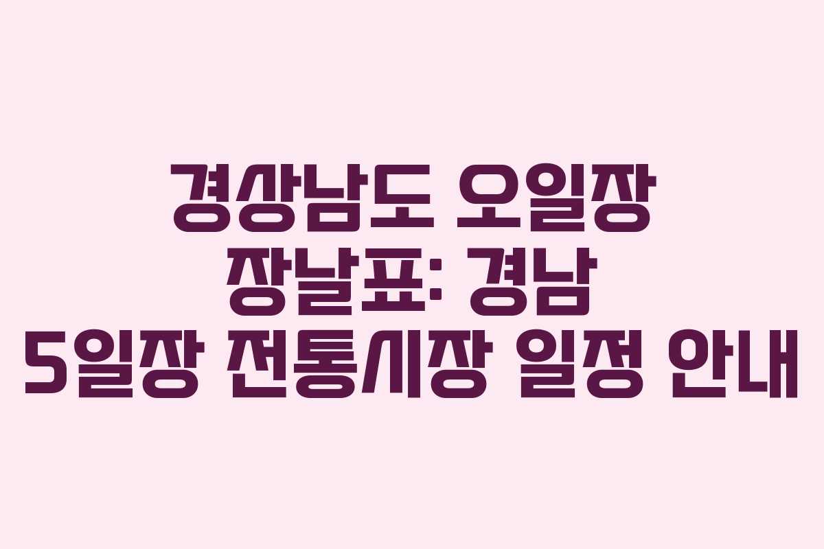 경상남도의 오일장은 정기적으로 열리는 전통 시장으로, 주마다 일정한 날에 운영됩니다. 2026년 기준으로 각 지역별 오일장 장날을 확인하여 놓치지 말고 방문할 수 있도록 하세요.
