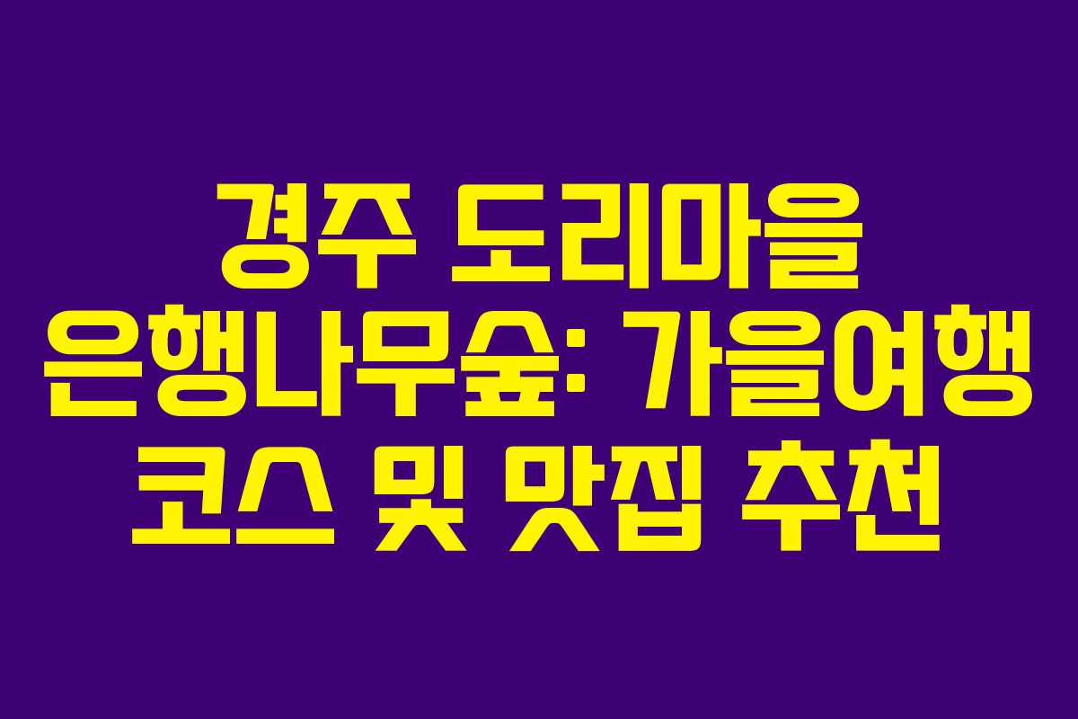 천년의 역사를 지닌 경주는 가을철에 더욱 매력적인 여행지로 떠오릅니다. 그중에서도 경주시 도리마을의 은행나무숲은 노란 은행잎으로 물든 아름다운 풍경을 자랑하며, 많은 여행객들이 찾는 명소입니다. 이번 글에서는 도리마을 은행나무숲의 매력과 함께 주변 맛집을 소개하겠습니다.