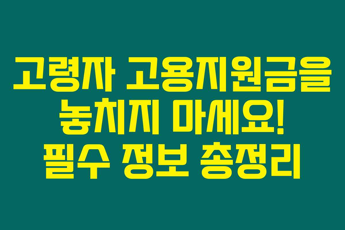 고령자 고용지원금을 신청하려는 여러분께, 놓쳐서는 안 될 중요한 내용이 있습니다. 고령자 고용지원금에 대해 자세히 알아보지 않으면 근로자 채용에서 큰 손해를 보게 될 수 있거든요. 자세한 정보가 궁금하다면 아래를 읽어보시면 됩니다.