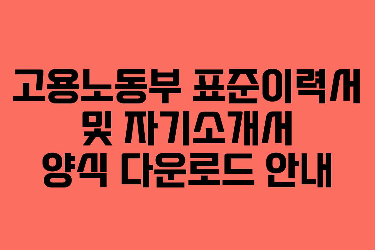 고용노동부 공식 홈페이지 또는 관련 블로그에서 표준이력서 및 자기소개서 양식을 무료로 다운로드할 수 있습니다.