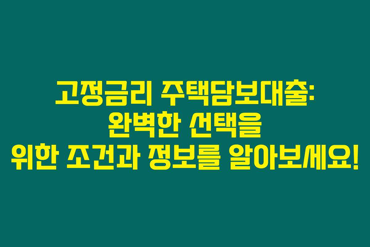 고정금리 주택담보대출의 조건은 무엇인가요?
