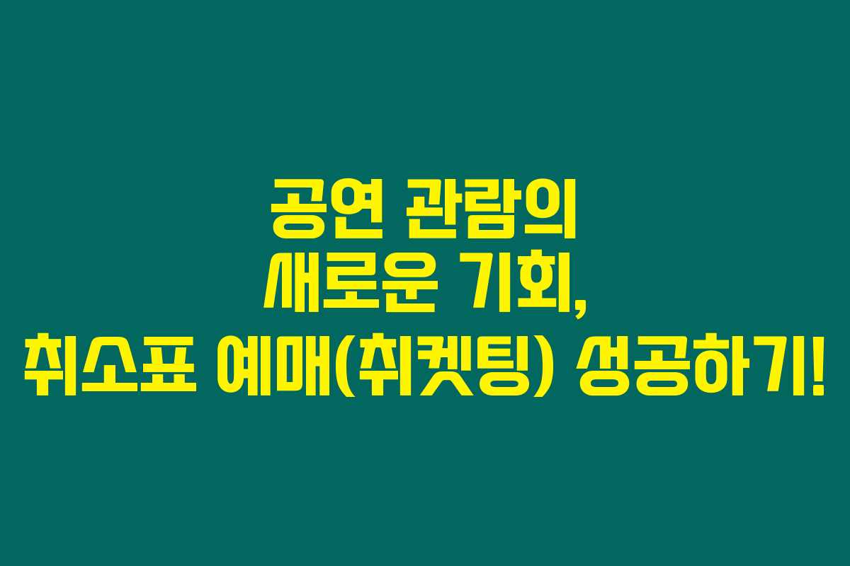 제가 직접 경험해본 결과, 공연 티켓팅에서 실패한 후에도 희망을 잃지 않아도 괜찮습니다. 취소표 예매를 통해 다시 한 번 기회를 잡을 수 있거든요. 아래를 읽어보시면 취소표 예매(취켓팅) 성공하는 방법에 대한 유용한 팁과 정보를 공유하겠습니다. 이 글을 통해 원하는 공연을 꼭 관람하시길 바랍니다.