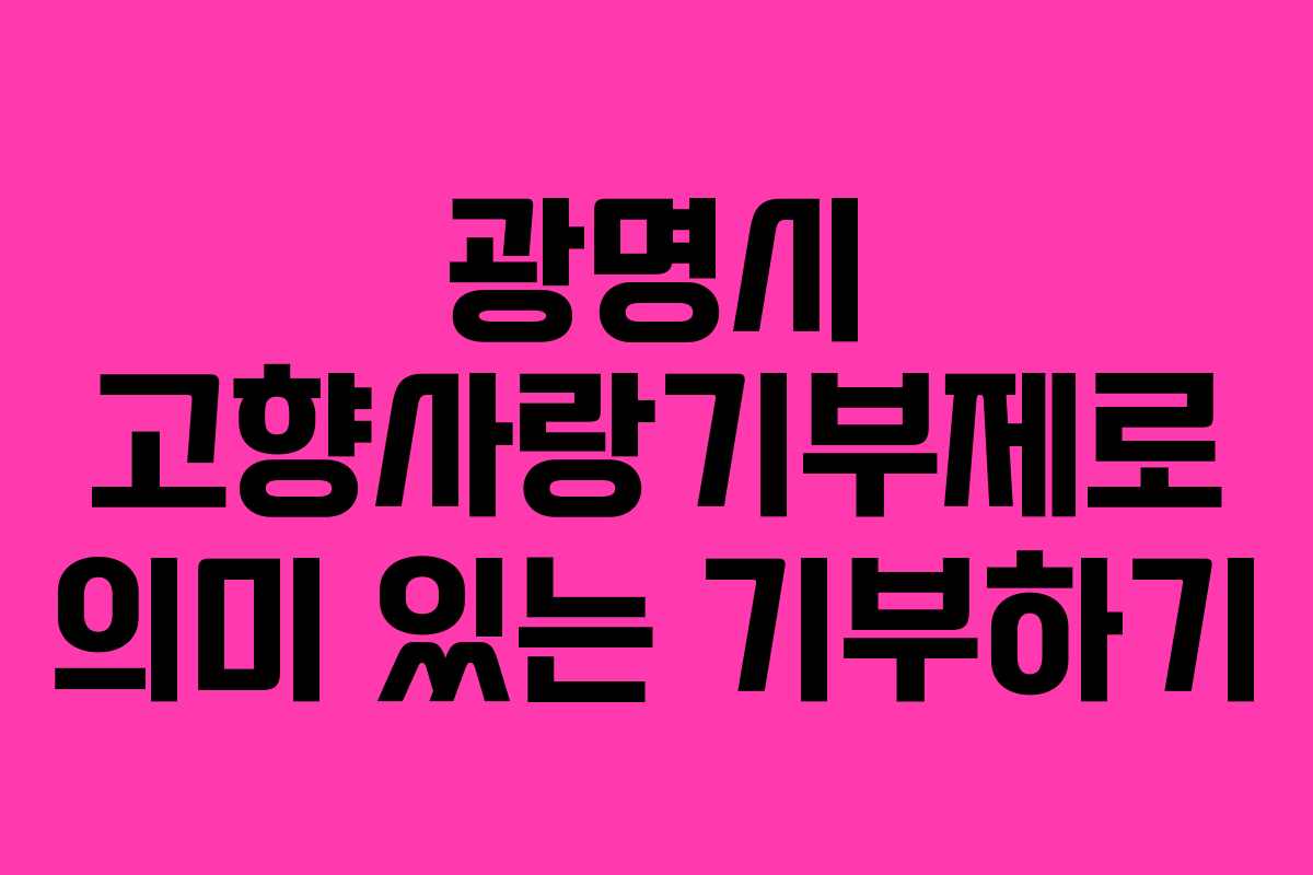 연말이 다가오면 많은 분들이 연말정산을 준비하며 기부에 대한 관심을 가지게 됩니다. 특히 광명시에 기부를 하면 특별한 답례품과 함께 세액공제 혜택까지 누릴 수 있는 기회가 있습니다. 이번 글에서는 광명시 고향사랑기부제를 통해 기부하는 방법과 그 혜택에 대해 알아보겠습니다.
