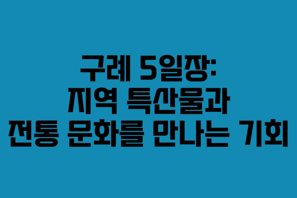 구례 5일장은 전라남도 구례군에 위치한 전통 시장으로, 지역 주민들과 방문객들에게 큰 인기를 끌고 있는 행사입니다. 이 시장은 매달 음력 5일과 20일에 열리며, 다양한 지역 특산물을 저렴한 가격에 구매할 수 있는 절호의 기회를 제공합니다. 본 문서에서는 구례 5일장에 대한 자세한 정보와 방문 시 유용한 팁을 소개합니다.