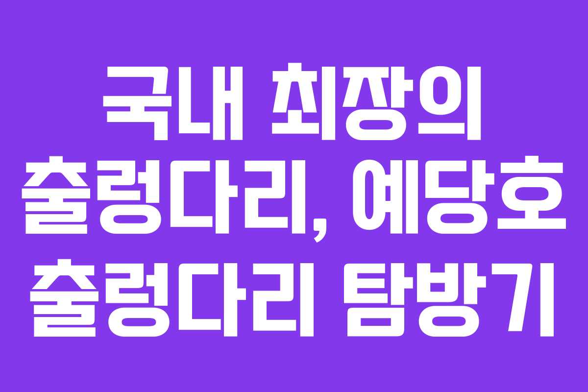 예당호 출렁다리는 국내에서 가장 긴 출렁다리로, 길이가 402m에 달하며 충청남도 예산군에 위치해 있습니다. 이 출렁다리는 예당호를 가로지르며 아름다운 경관을 감상할 수 있는 명소로, 많은 관광객들의 사랑을 받고 있습니다.