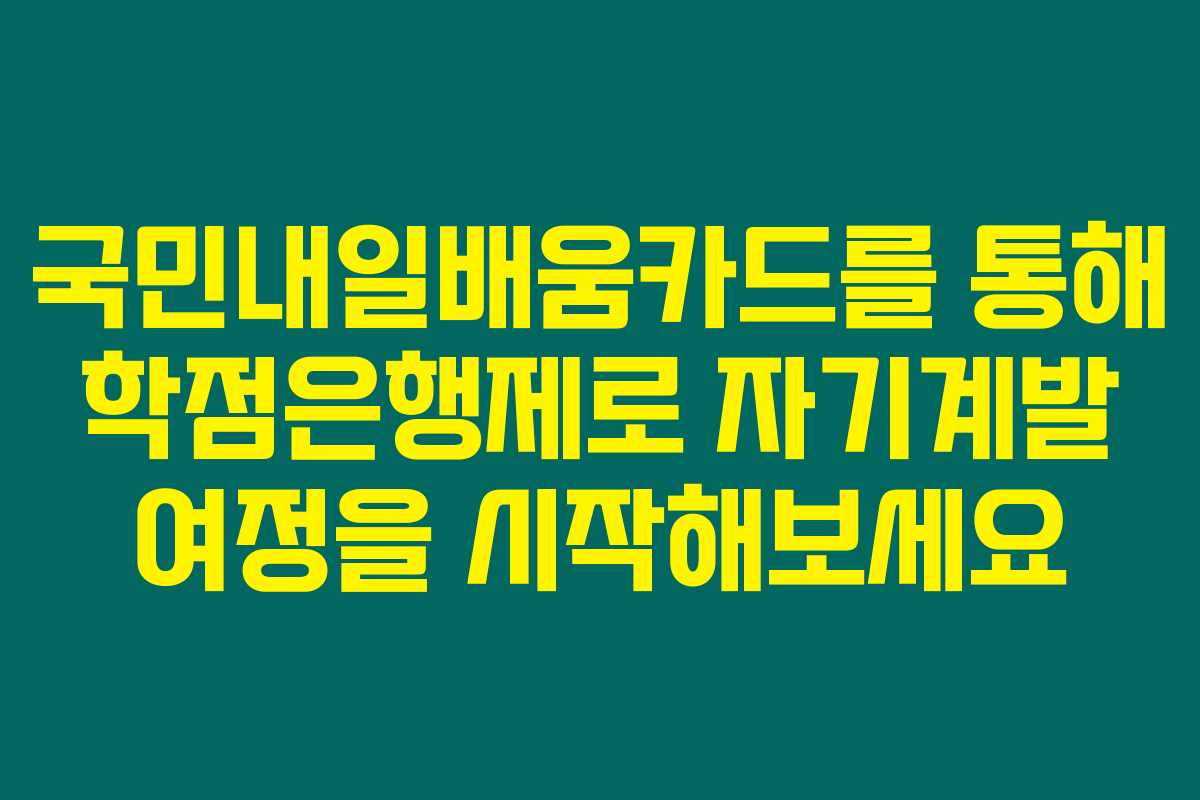 여러분의 성장과 발전을 위한 좋은 기회가 많이 있습니다. 국민내일배움카드와 학점은행제를 통해 원하시는 목표를 향해 나아가시길 바랍니다.