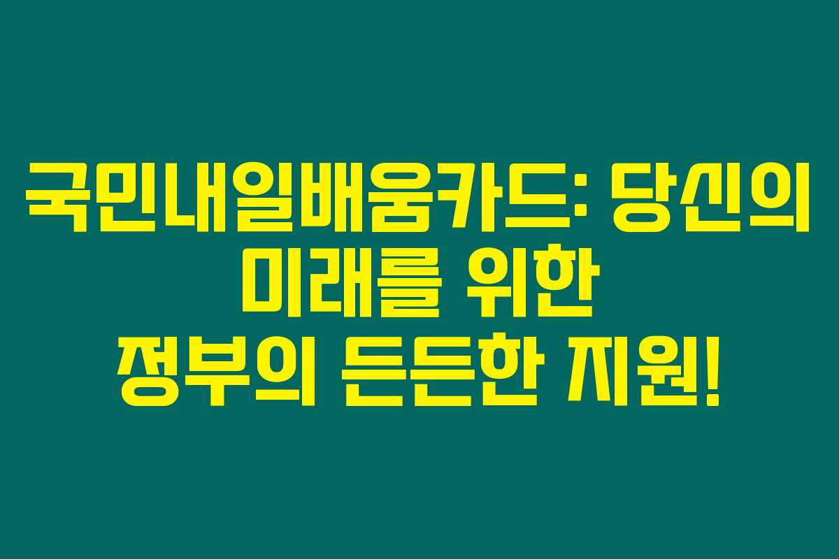 국민내일배움카드: 당신의 미래를 위한 정부의 든든한 지원!