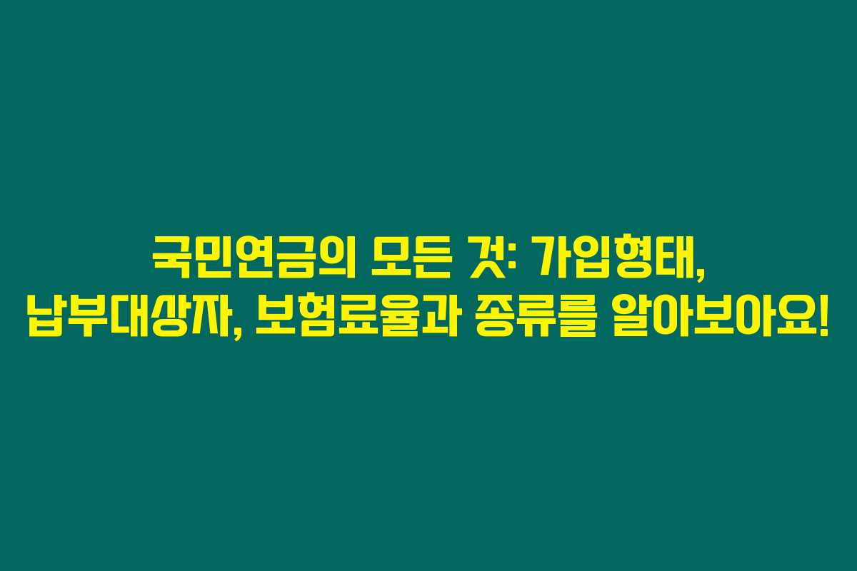 제가 직접 체크해본 바로는 국민연금이란 우리나라는 물론 많은 나라에서 매우 중요한 사회보험 제도입니다. 이 제도는 국민의 안정적인 노후를 보장하고, 갑작스러운 사고나 질병으로 인한 경제적 어려움을 도움 주기 위해 설계되었고요. 아래를 읽어보시면, 국민연금의 다양한 가입형태와 납부대상자, 보험료율, 그리고 종류에 대해 자세히 알게 되실 거예요!