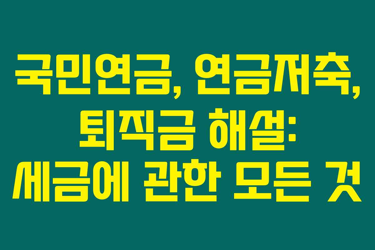 제가 직접 체크해본 바로는, 국민연금, 연금저축, 개인형 연금 IRP, 그리고 퇴직금 관련하여 발생하는 세금은 노후 재정 계획을 세우는데 중요한 요소입니다. 이러한 연금들은 노후에 필수적인 수입원이지만, 많은 분들이 세금 문제에 대해 복잡하게 생각하시는 것 같아요. 아래를 읽어보시면 각 연금 종류에 따른 세금의 구조와 이해하지 못했던 부분들을 쉽게 알 수 있을 것입니다.