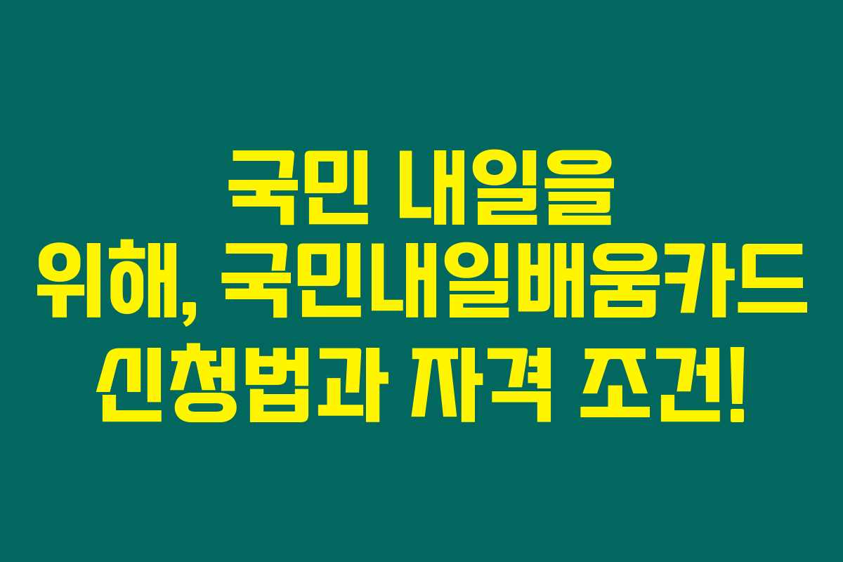 제가 판단하기로는, 국민내일배움카드는 이제 더 많은 사람들에게 직업훈련의 기회를 제공하기 위해 만들어진 제도랍니다. 이 글에서는 국민내일배움카드의 신청 방법과 자격 조건을 자세히 알려드릴게요.