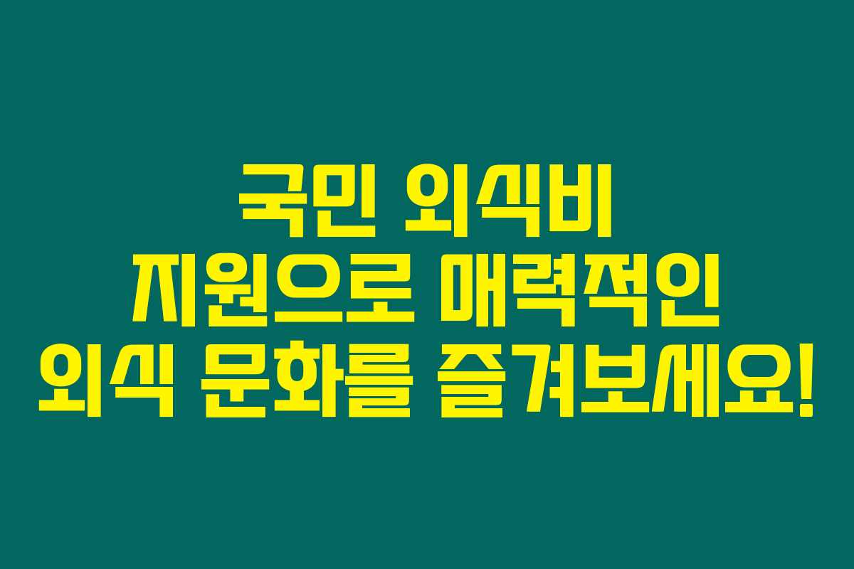 국민 외식비 지원, 외식업소, 농축산물 소비, 소비 촉진, 환급 조건, 캠페인 효과에 대한 정보와 함께 좀 더 많은 혜택을 챙겨보세요!