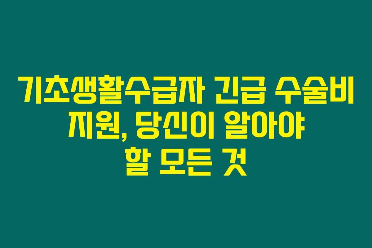 제가 직접 경험해본 결과로는, 기초생활수급자의 경우 갑작스러운 긴급 상황에서 의료비 지원이 필요할 때 정말로 마음의 큰 위안이 됩니다. 이 글에서는 기초생활수급자 긴급 수술비 300만 원 지원과 재난적 의료비 지원에 대해 자세히 설명드리겠습니다. 아래를 읽어보시면 두 가지 제도에 대해 더욱 명확하게 이해할 수 있을 것입니다.