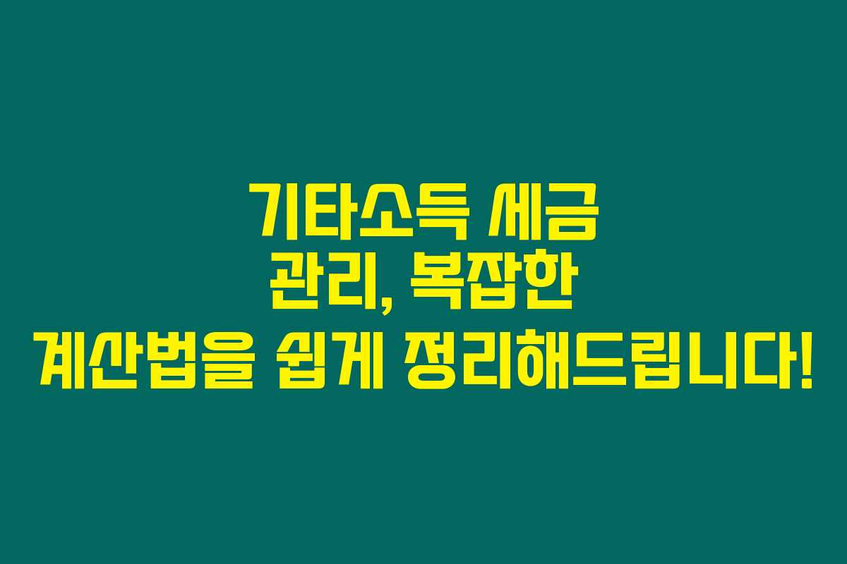 기타소득과 관련된 세금 문제는 많은 분들에게 복잡하고 어려운 과제가 아닐까 생각해요. 제가 직접 체크해본 바로는, 기타소득에 대해 정확하게 이해하고, 이를 바탕으로 종합소득세를 어떻게 계산할지 아는 것이 중요하다는 걸 느꼈어요. 아래를 읽어보시면, 기타소득의 정의부터 계산법, 그리고 분리과세와 종합과세의 장단점까지 철저하게 풀이해 드릴게요.