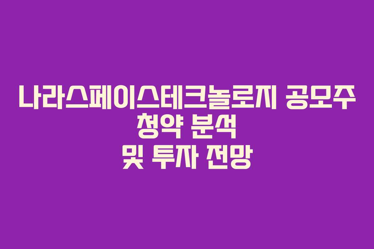 최근 우주 항공 산업에 대한 투자자들의 관심이 높아지면서, 나라스페이스테크놀로지의 공모주 청약이 삼성증권에 의해 진행됩니다. 투자자들은 이번 청약이 과연 가치가 있는지, 그리고 상장일 시초가가 공모가의 두 배에 형성될 가능성인 따상에 대해 궁금해하고 있습니다. 본 글에서는 기관 수요예측 결과와 의무보유확약 비율을 토대로 나라스페이스테크놀로지의 투자 매력도를 분석하고, 합리적인 대응 전략을 제시합니다.