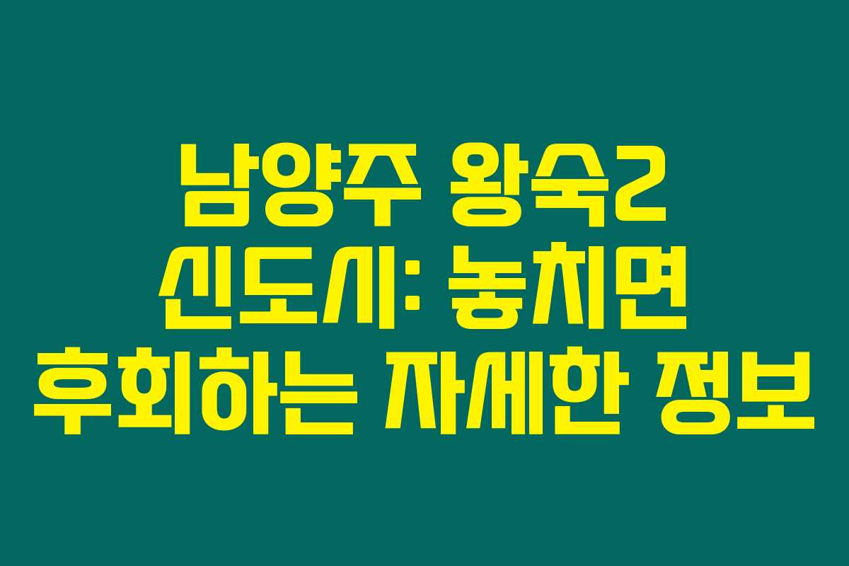 남양주 왕숙2 신도시는 다양한 매력으로 많은 주목을 받고 있고 이제 곧 청약도 시작되니 좋은 기회를 잡으시길 바라요. 🚀