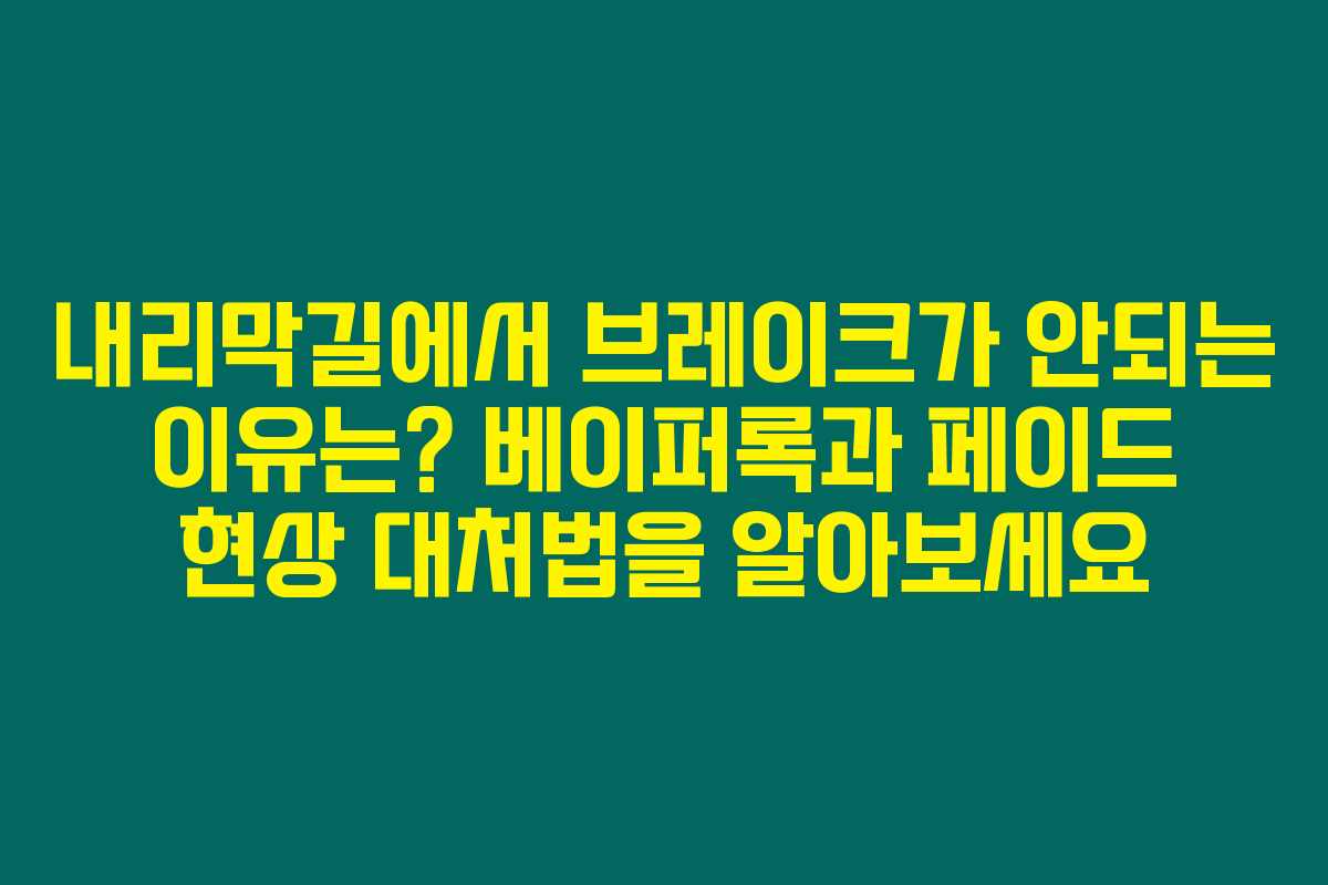 해결책을 찾아보니, 내리막길에서 브레이크가 작동하지 않는 주된 원인으로는 베이퍼록과 페이드 현상을 들 수 있더라고요. 이러한 현상들은 브레이크를 지나치게 자주 사용하거나 고온에서 장시간 주행이 원인으로 작용해요.