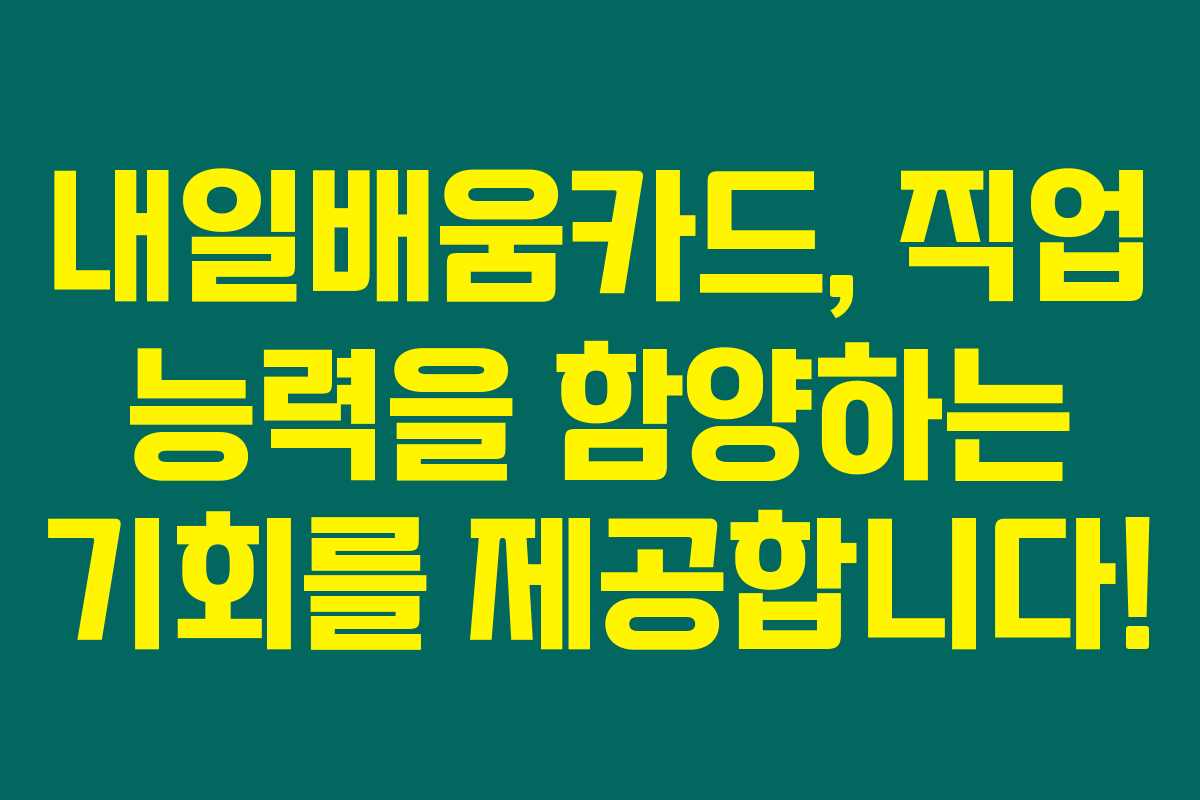 내일배움카드는 단순히 직업 훈련을 위한 카드일 뿐 아니라, 개인의 미래를 준비하는 데 있어 큰 도움이 됩니다. 이 카드를 통해 훈련비 부담을 덜고, 새로운 기술을 배우거나 취업 기회를 확장할 수 있다는 점에서 긍정적인 경험이라고 할 수 있어요.