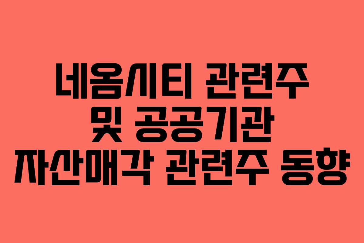 최근 네옴시티 프로젝트와 공공기관 자산매각에 대한 관심이 높아지고 있습니다. 이들 관련 주식은 정부의 정책 변화와 글로벌 시장의 움직임에 따라 주가에 큰 영향을 받을 것으로 보입니다.