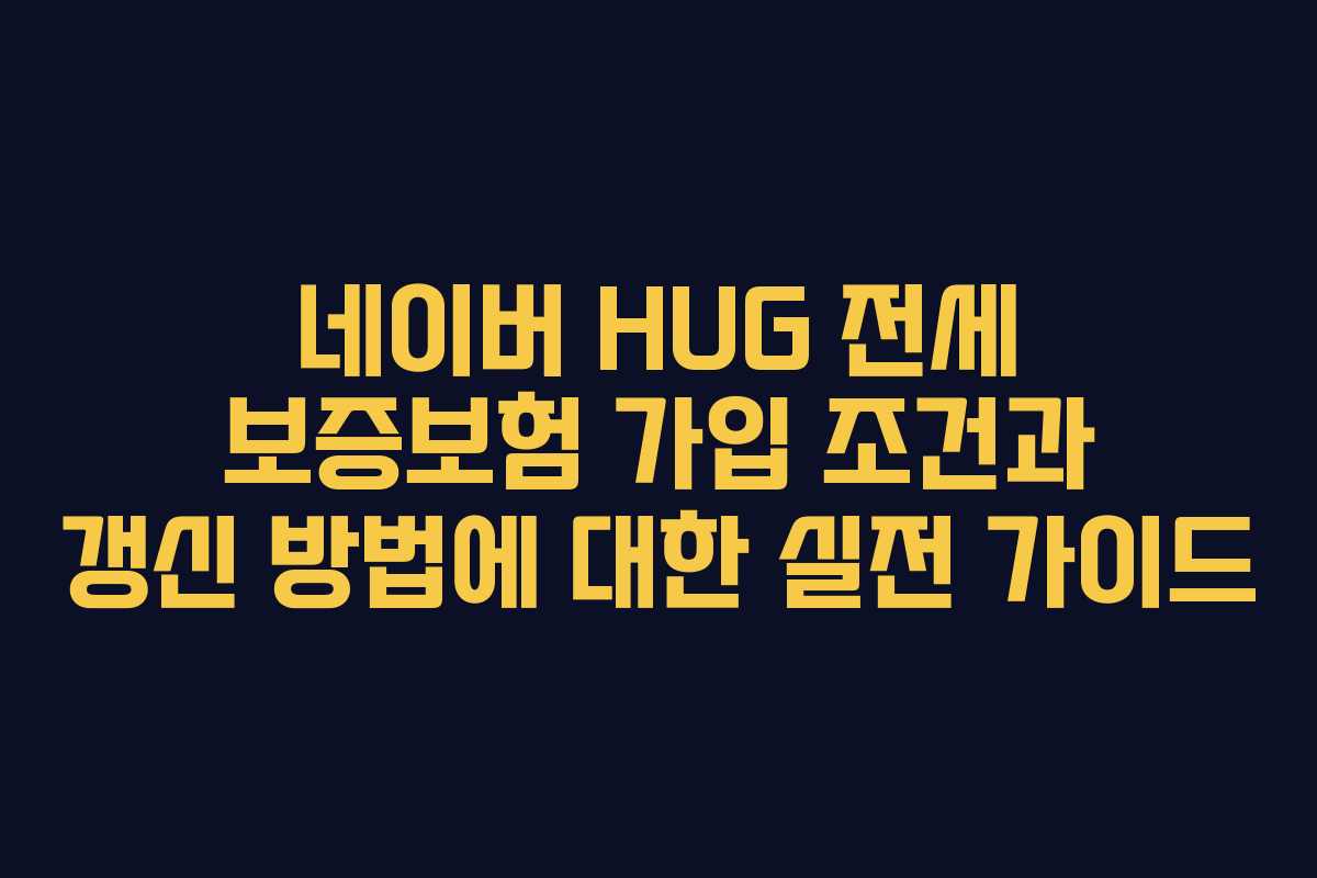 네이버 HUG 전세 보증보험 가입 조건과 갱신 방법에 대한 실전 가이드