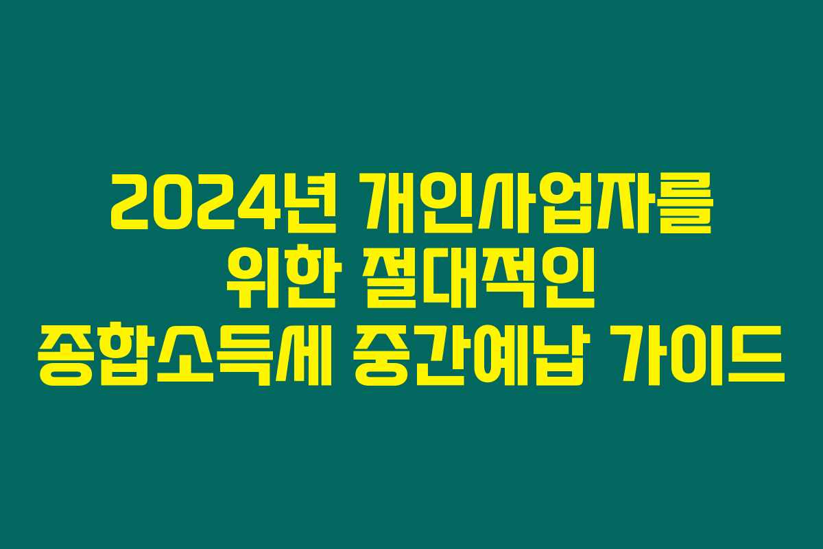 디스크립션: 개인사업자를 대상으로 한 2024년 종합소득세 중간예납제를 자세히 안내드립니다. 제가 직접 확인 해본 결과, 이 글에서는 중간예납세액의 의미와 계산 방법, 납부 기한 및 방법, 분납 옵션, 추계신고에 대한 정보까지 포함하여 효율적인 납부 방법을 알려드립니다. 현명한 납부를 통해 세금 부담을 줄여보세요.