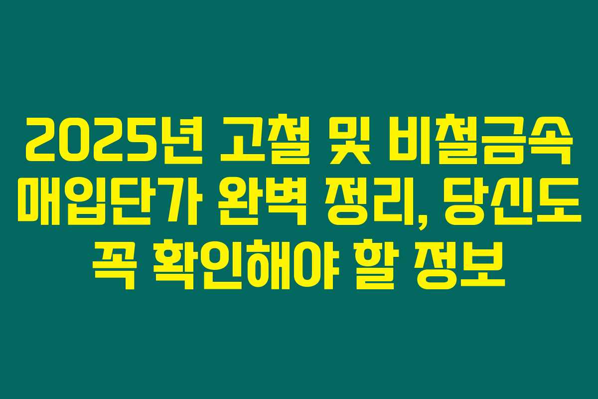 2025년 고철 및 비철금속 매입단가 완벽 정리, 당신도 꼭 확인해야 할 정보