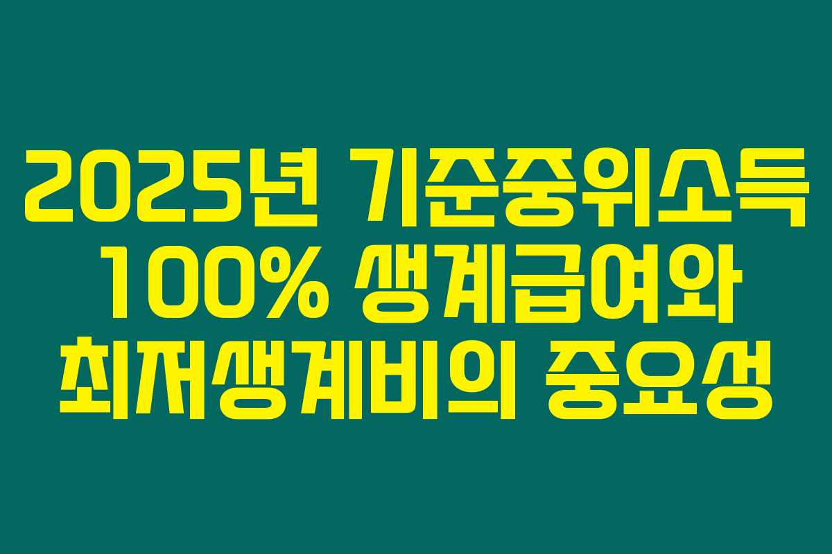 제가 직접 리서치한 바로는, 2025년 기준중위소득과 이에 따른 생계급여 기준이 역대 최대 수준으로 인상되어 많은 이들에게 큰 영향을 미칠 것으로 보입니다. 특히 기준중위소득 100%에 해당하는 금액이 발표되면서, 많은 사람들이 이 복지 혜택을 통해 당장의 생계를 지원받을 수 있게 될 것입니다. 아래를 읽어보시면, 기준중위소득의 개념과 2025년 생계급여 기준에 대해 자세히 알아보실 수 있습니다.