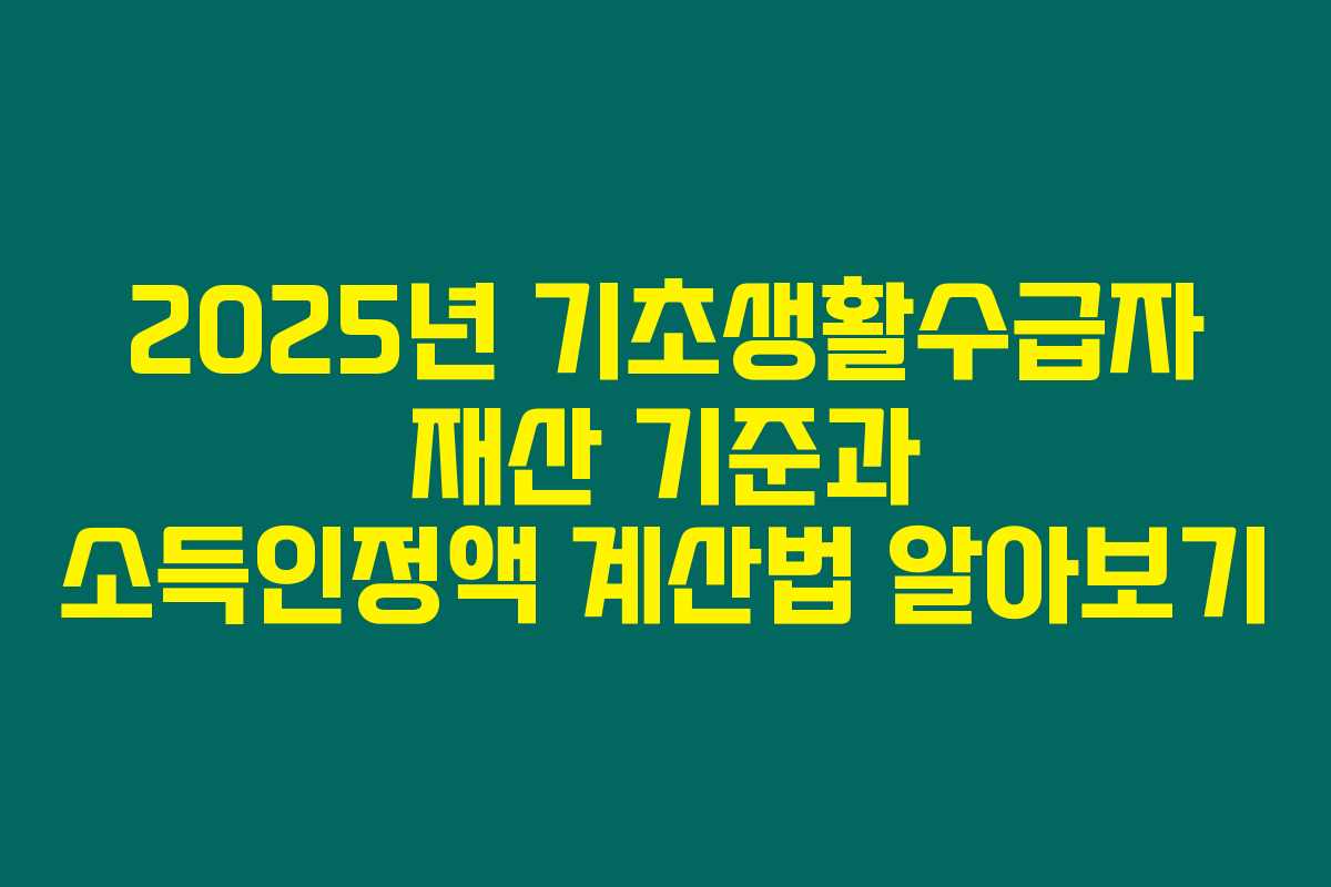 2025년 기초생활수급자는 재산 기준과 소득 기준이 있는데, 이 두 가지 조건을 충족해야 합니다. 각 지역별로 다를 수 있어요.