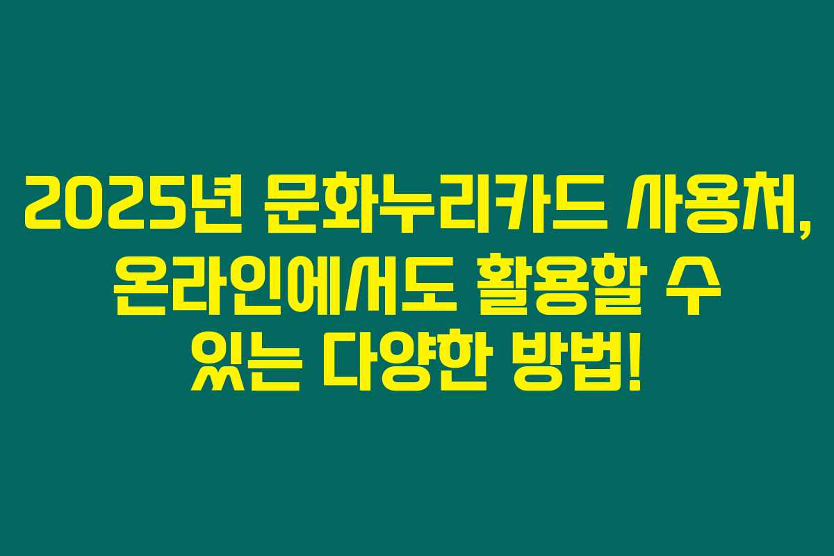 이처럼 문화누리카드를 적극적으로 활용하면 더욱 풍요로운 문화생활을 즐길 수 있습니다. 여러분도 신청 자격이 된다면, 2025년 문화누리카드를 꼭 신청해보세요!
