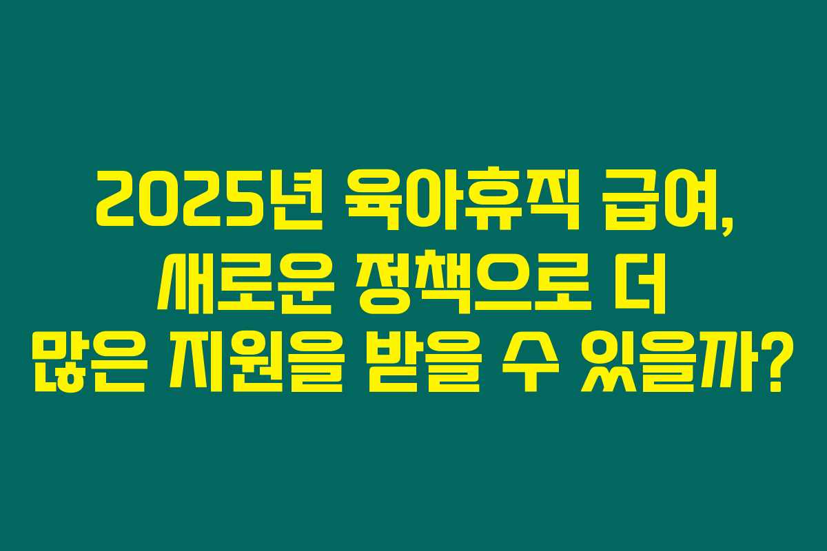 제가 직접 경험해본 결과로는 2025년부터 육아휴직 급여가 대폭 강화되며, 많은 부모들에게 경제적 안정감을 제공할 것입니다. 이전에는 급여가 통상임금의 80%만 지급되었지만, 이제는 100%로 변경되었답니다. 이는 육아휴직을 고민하는 많은 부모들이 한층 더 부담을 덜게 하는 좋은 소식이에요. 이 글을 통해 육아휴직 급여에 대해 상세히 알아보도록 할까요?