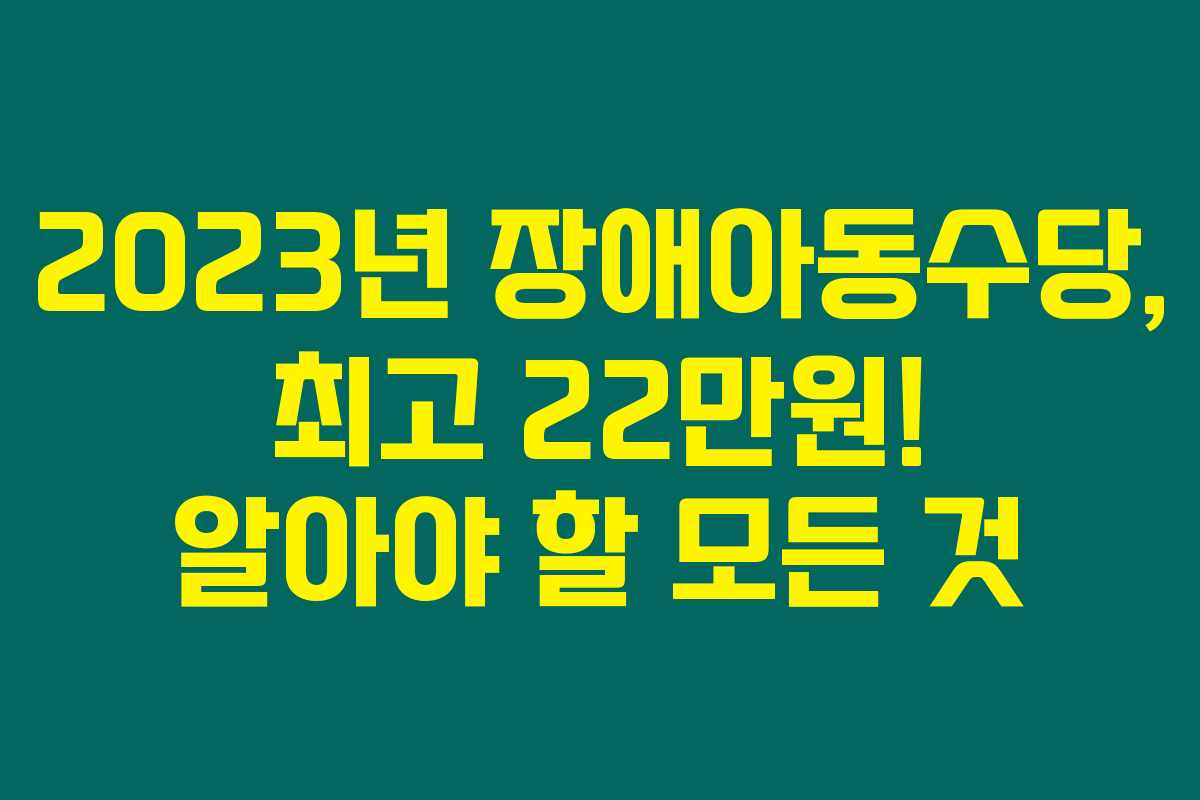 2023년 장애아동수당, 최고 22만원! 알아야 할 모든 것