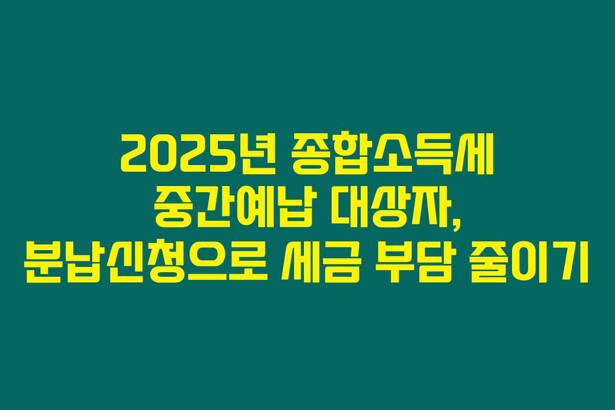 제가 판단하기로는, 종합소득세 중간예납 관련 내용에 대해 상세히 알려드립니다. 매우 중요한 세금 기간이 다가오고 있기 때문에, 개인사업자라면 반드시 확인해야 할 사항들입니다. 아래를 읽어보시면 중간예납 대상자, 분납신청 방법 및 유의사항에 대해 필요한 정보를 모두 알 수 있을 거예요.