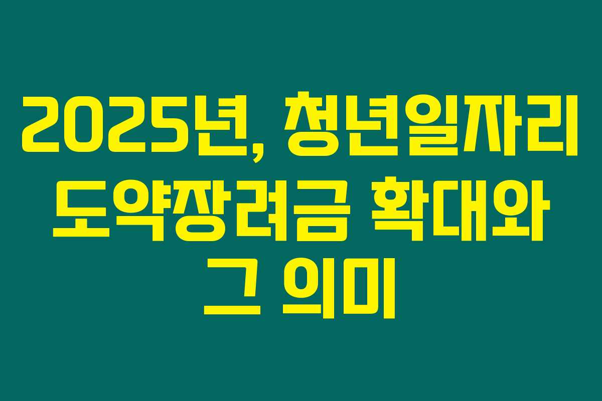 제가 직접 체크해본 바로는 2025년부터 시행될 청년일자리 도약장려금의 확대가 청년 구직자와 기업 모두에게 긍정적인 영향을 미칠 것으로 예상됩니다. 이번 정책은 청년들이 안정적인 일자리를 찾게 하고, 기업들이 인재를 확보하는 데 필요한 지원을 아끼지 않겠다는 의지의 표현입니다. 아래를 읽어보시면 이 정책의 구체적인 내용과 기대되는 효과에 대해 자세히 알아보실 수 있습니다.