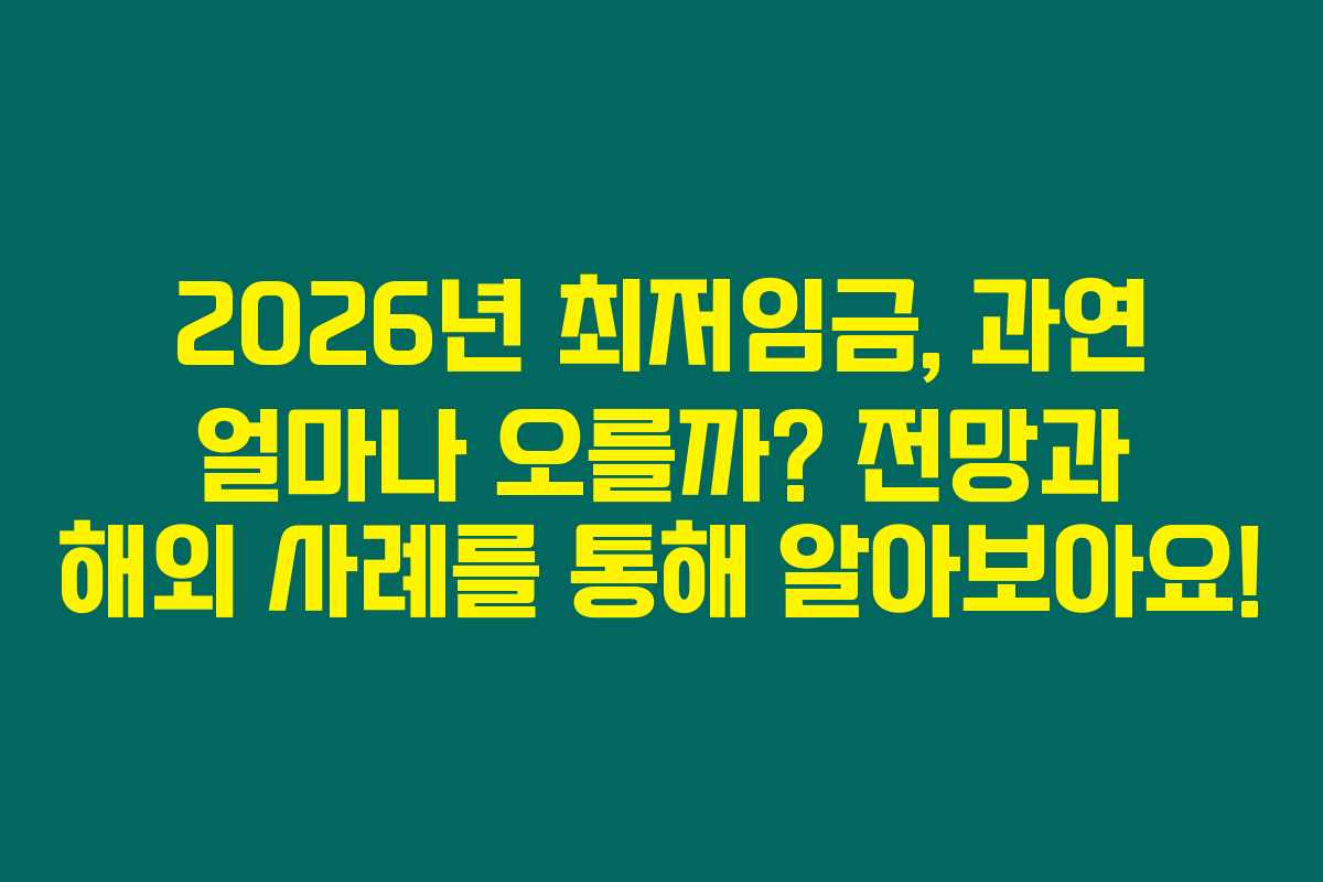 제가 알아본 바로는, 2026년 최저임금에 대한 관심이 날로 커지고 있습니다. 최근 최저임금은 노동 시장의 기초를 형성하며 많은 사람들의 생계와 직결되기 때문에 사회적인 이슈로 떠오르고 있죠. 최저임금 인상에 관한 이야기는 매년 반복되며, 그 전망은 논란도 불러일으킵니다. 아래를 읽어보시면, 2026년 최저임금 인상 전망과 해외 최저임금 비교를 통해 이 문제가 얼마나 중요한지를 알게 되실 겁니다.