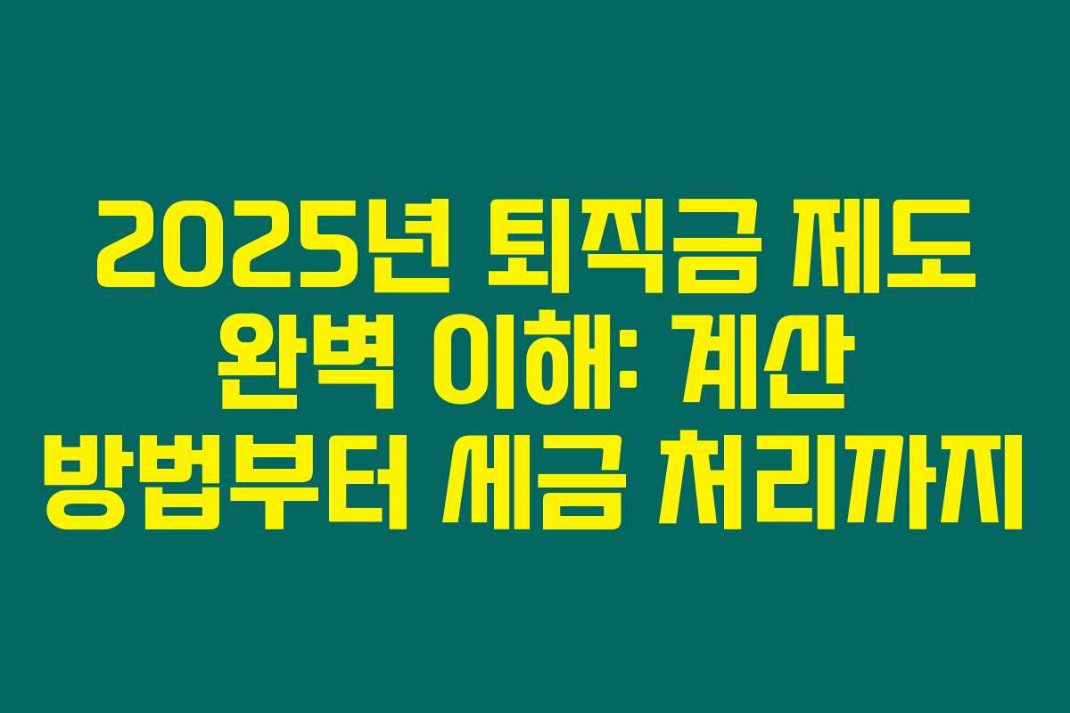2025년 퇴직금 제도 완벽 이해: 계산 방법부터 세금 처리까지