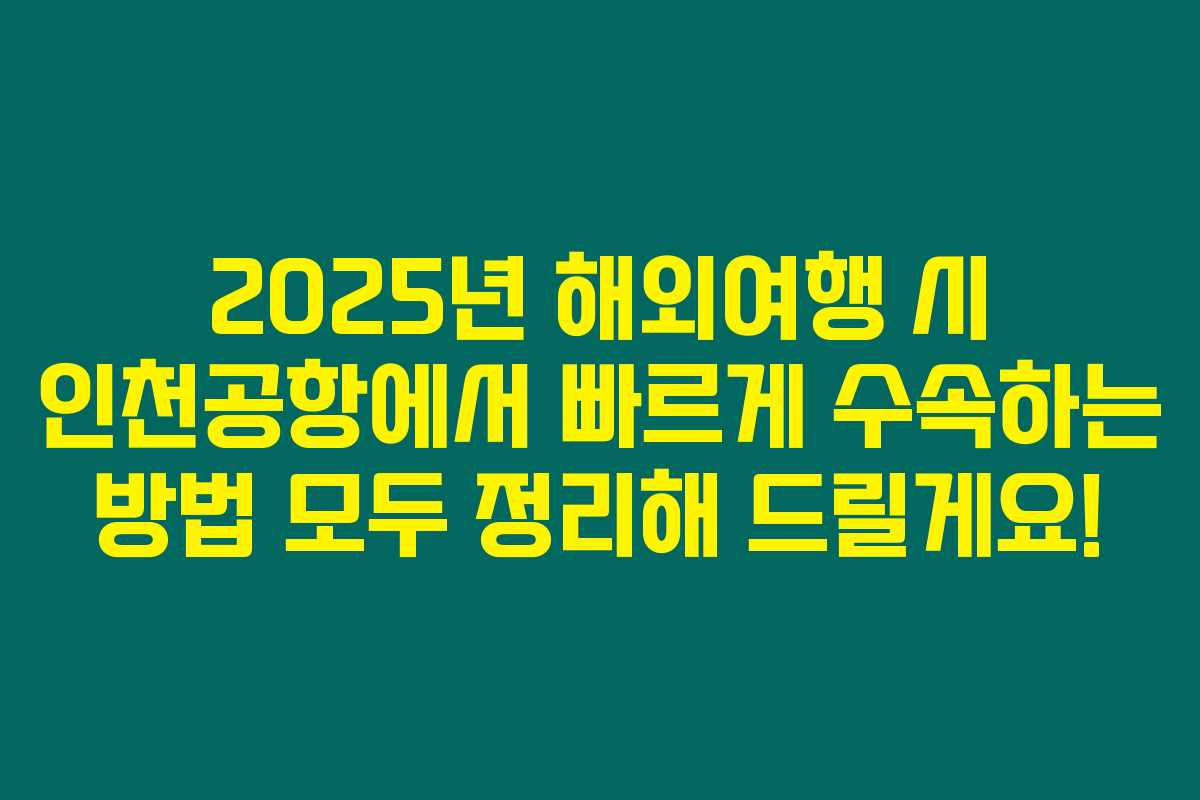 마무리하자면, 2025년 해외여행을 계획 중인 여행자라면 인천공항에서의 수속 시간을 최소화하는 것이 여행의 피로도를 낮추는 데 큰 도움이 됩니다. 셀프 체크인, 자동출입국심사, 패스트트랙, 모바일 탑승권 활용 등 다양한 방법을 사전에 숙지하고 준비하면 더욱 즐거운 여행이 될 수 있을 거예요.