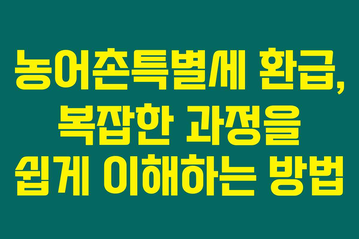 제가 직접 알아본 바로는 농어촌특별세 환급 과정은 많은 사람들이 복잡하게 느끼기도 하지만, 체계적으로 절차를 따라간다면 그리 어렵지 않답니다. 특히 농어촌 지역에서의 세금 환급은 중요한 사항이므로 체계적으로 접근하는 것이 필요합니다. 아래를 읽어보시면 환급 조건부터 필요한 서류, 절차까지 모든 정보를 자세히 이해할 수 있을 거예요.