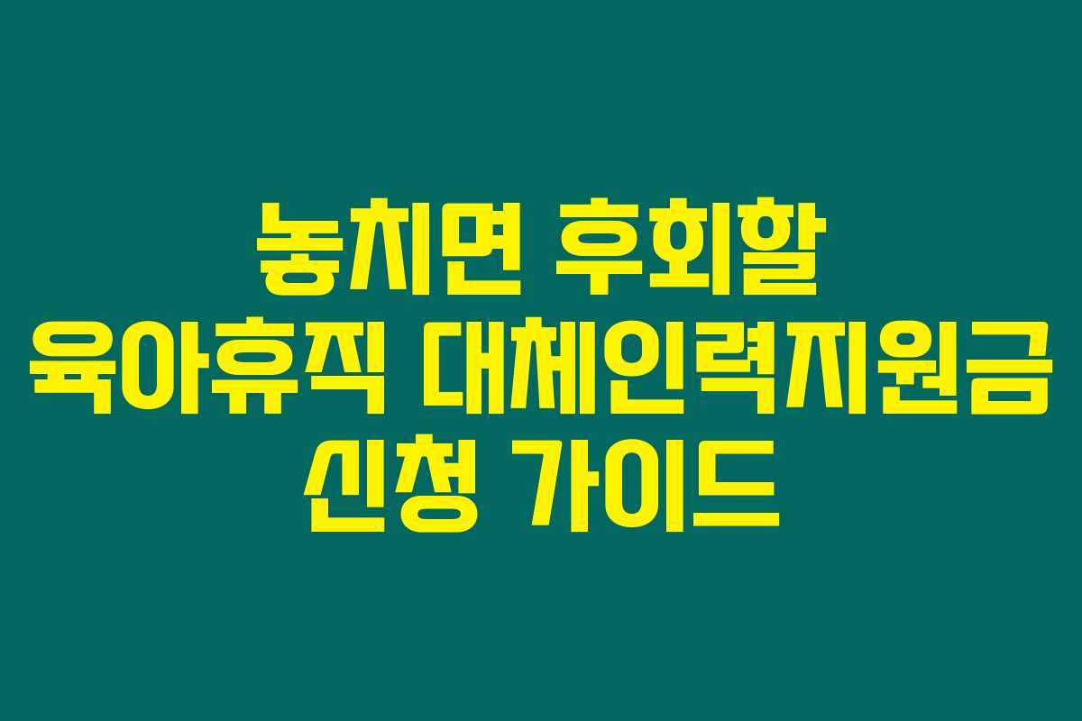 제가 직접 경험해본 바로는 육아휴직 대체인력지원금은 육아휴직을 사용하는 부모님들이 대체인력을 채용할 때 큰 도움이 되는 제도입니다. 이 글에서는 육아휴직 대체인력지원금의 신청 방법과 요건을 상세히 알아보겠습니다. 아래를 읽어보시면 신청과정이 얼마나 쉬운지 알게 되실 거에요.