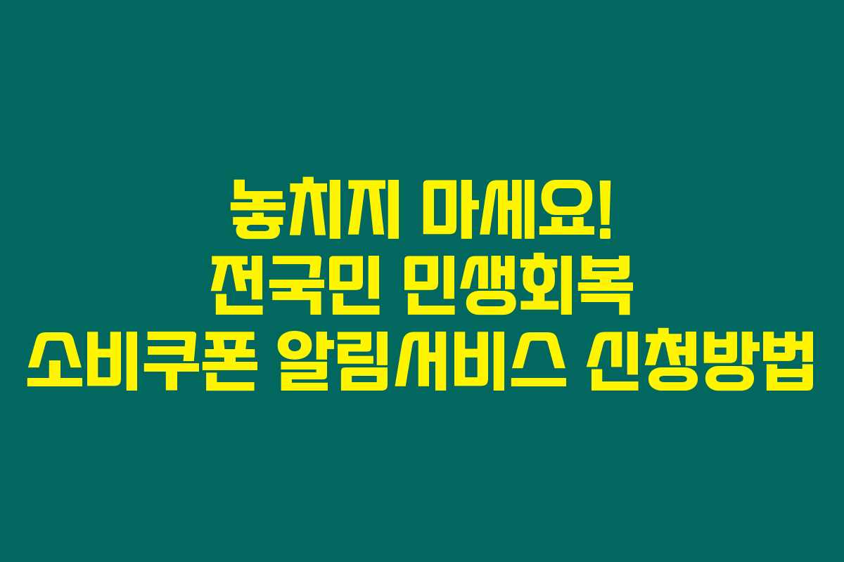 2025년부터 시작되는 민생회복 소비쿠폰은 모든 국민에게 유용한 혜택인데요. 하지만 신청하지 않으면 받을 수 없답니다. 아래를 읽어보시면 간편한 알림서비스 신청 방법과 그 혜택을 자세히 설명드릴게요.