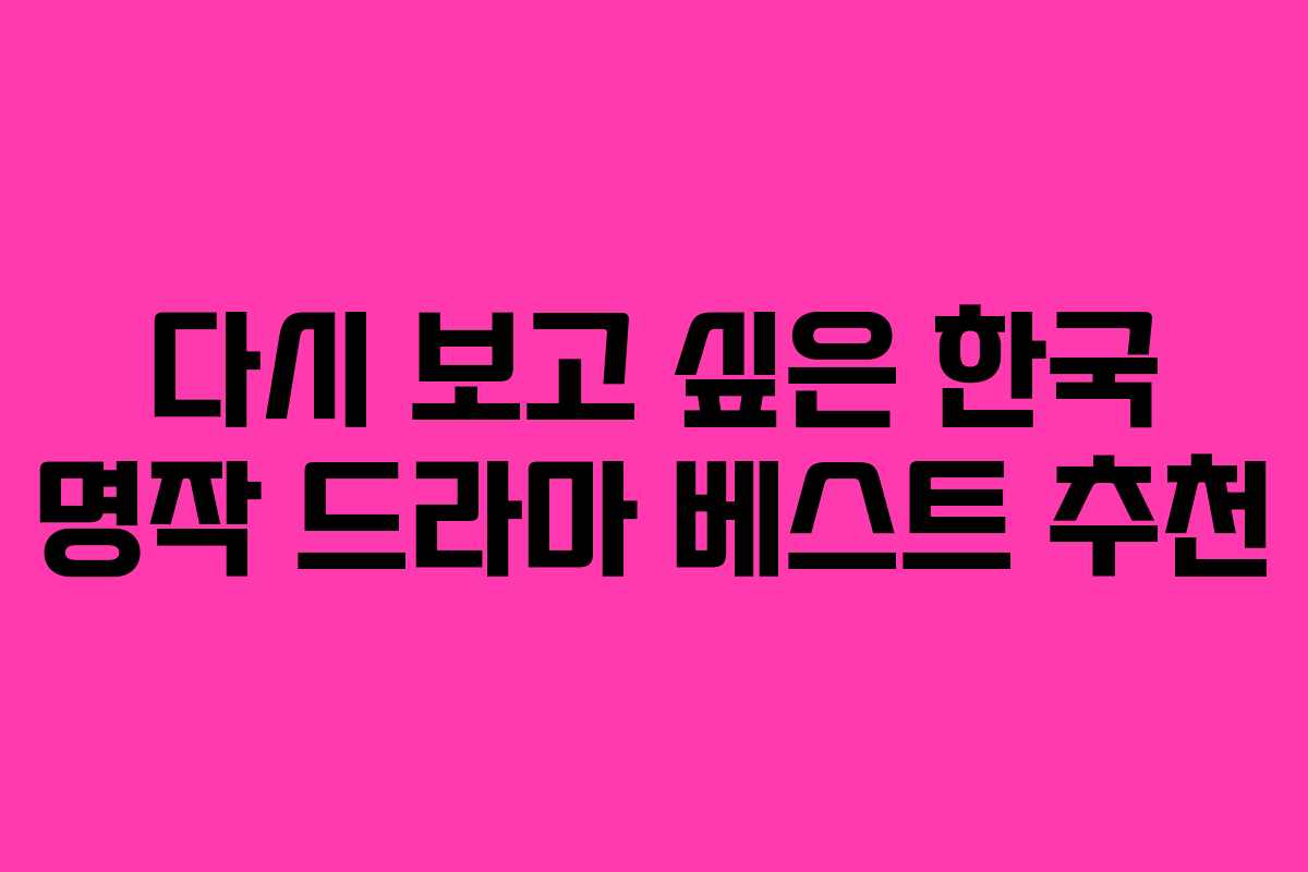 이상으로 다시 보고 싶은 한국의 명작 드라마들을 소개해 드렸습니다. 각 드라마들은 그들만의 매력과 독특한 스토리로 많은 사랑을 받았고, 지금 다시 보아도 여전히 재미있게 감상할 수 있습니다. 여러분도 이 드라마들을 통해 잊지 못할 경험을 해보시길 바랍니다.