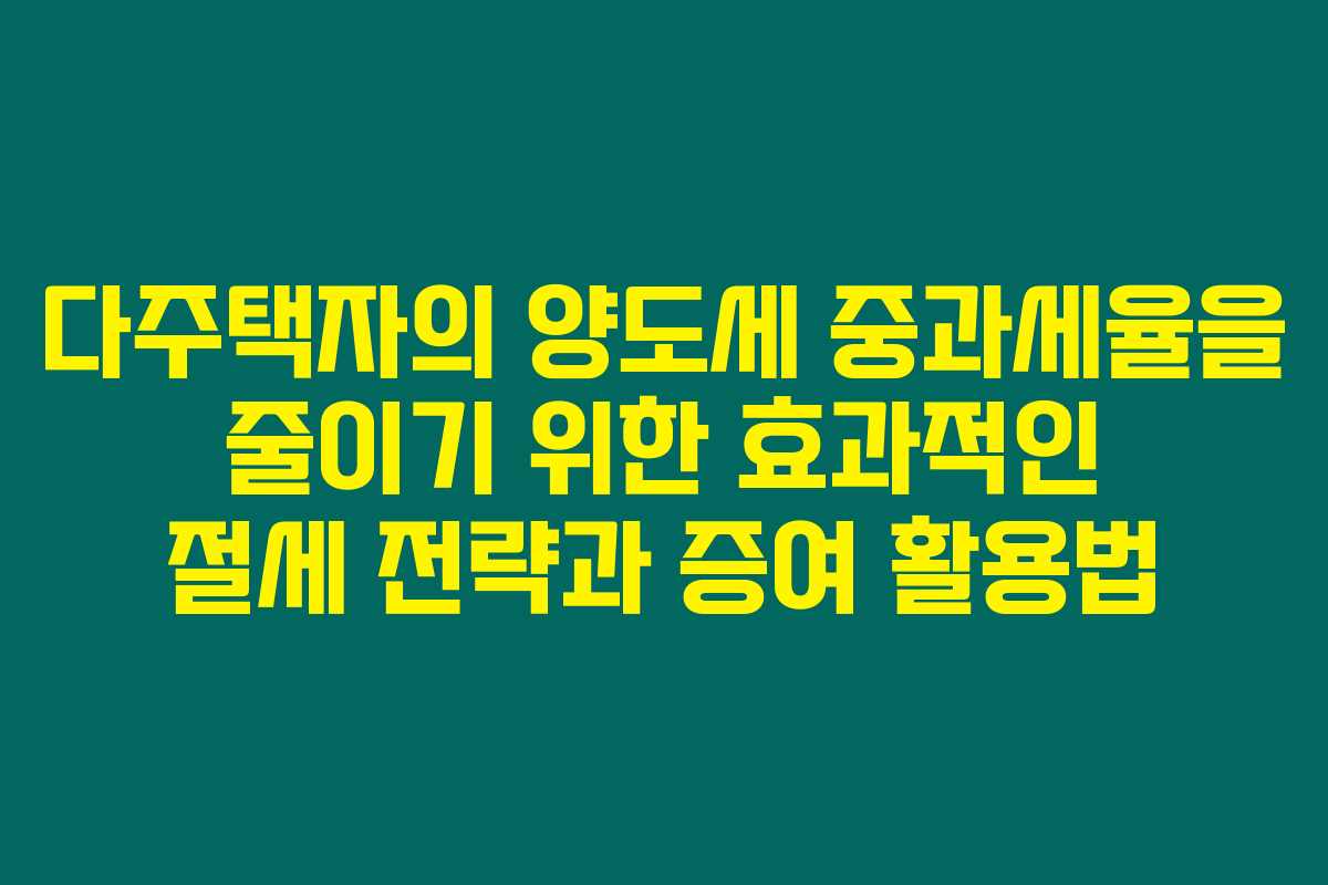 제가 알아본 바로는, 다주택자들이 가장 큰 세금 부담으로 겪는 것은 바로 양도세 중과입니다. 이 중과세율이 적용되면 막대한 세금이 부과되기 때문에, 많은 사람들이 절세 방법을 찾고 있어요. 아래를 읽어보시면 다주택자들이 양도세 중과세율을 줄일 수 있는 다양한 전략과 증여를 활용하는 법에 대한 유용한 정보를 알게 되실 겁니다.