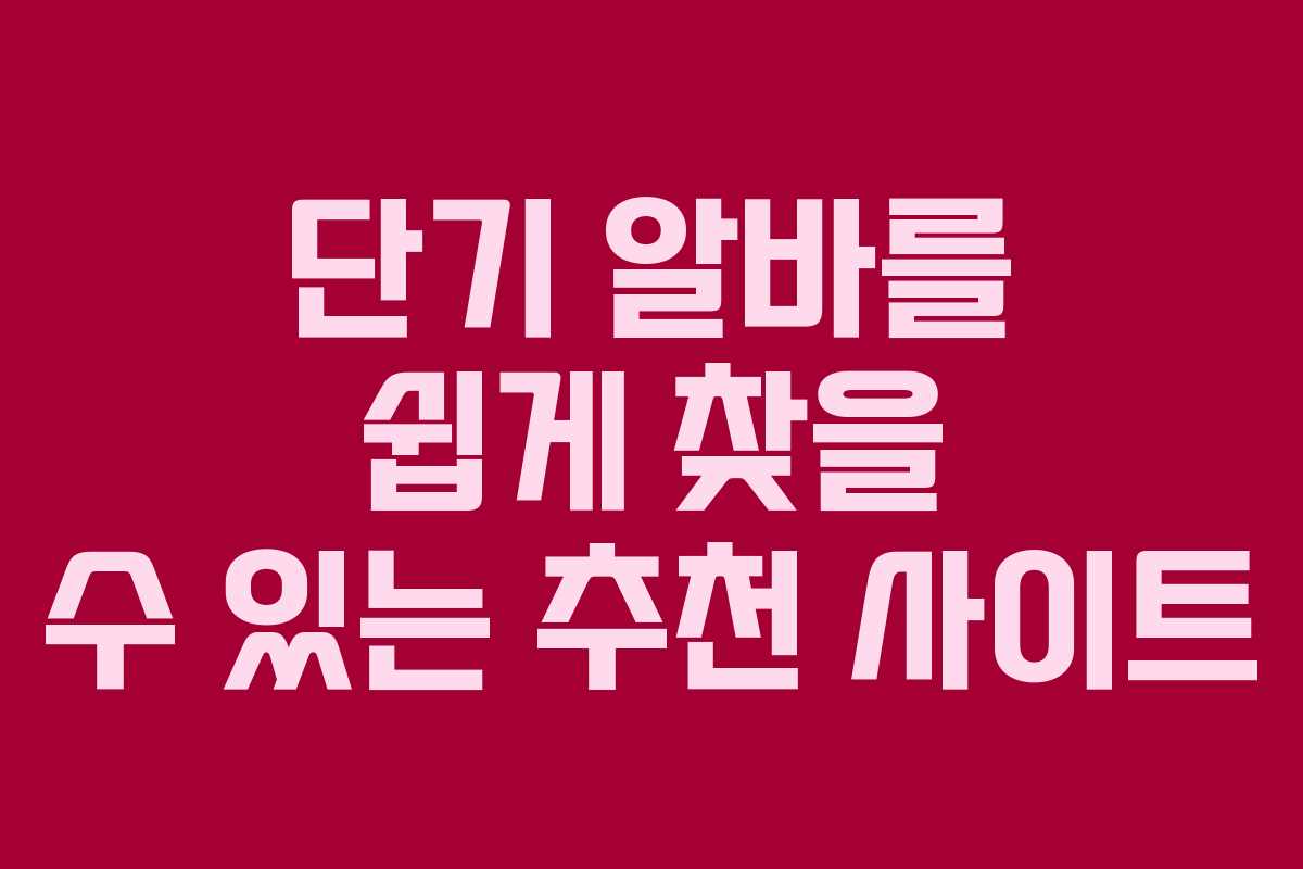 단기 알바를 찾기 위한 추천 사이트는 무엇인가요?