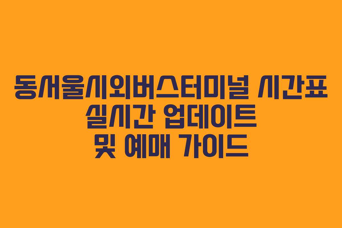 동서울시외버스터미널은 서울의 주요 교통 허브로, 다양한 지역으로의 이동이 가능합니다. 본 글에서는 최신 시간표와 예매 방법을 안내하여 여행 계획에 도움을 드리겠습니다.